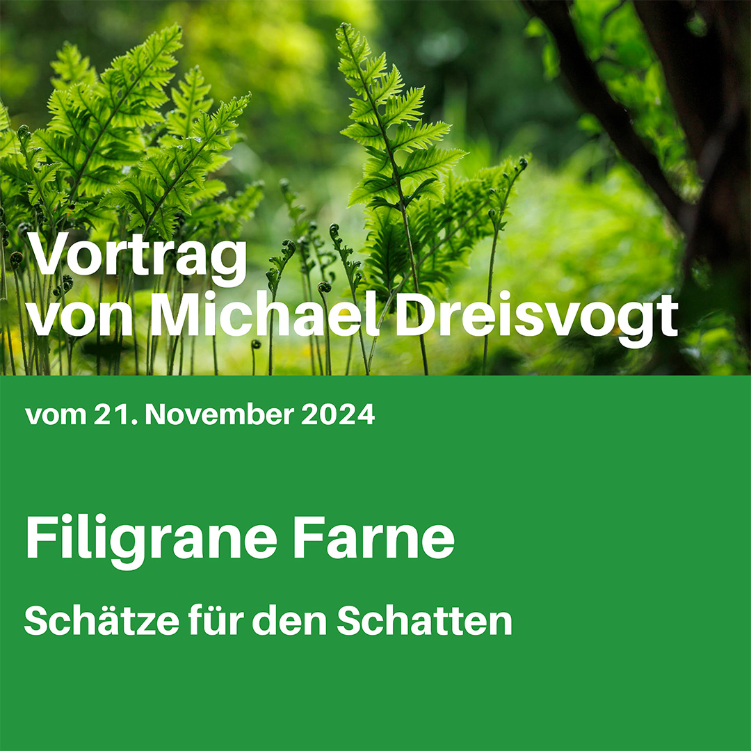 Der Vortrag möchte Michael Dreisvogt Licht auf diese schönen Pflanzen werfen und die Zuhörer motivieren, sich selbst dem Thema Farne im Garten zu widmen.